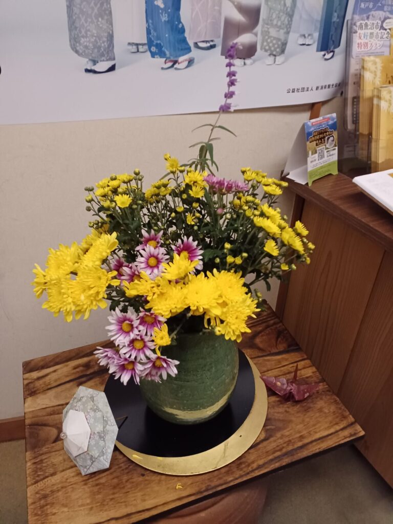 「みなお花屋さんの品ではなく、スタッフのお庭のお花なんですよ。」とちょっと誇らしげにお答えしました。本当にありがたいんですもの。