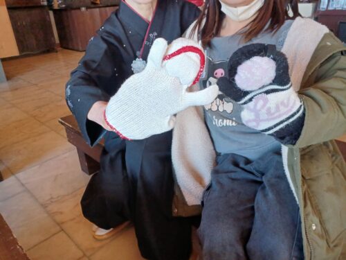 学校帰りのまごまごと、手袋で遊んでいたら、ふと思い出した手袋指人形。